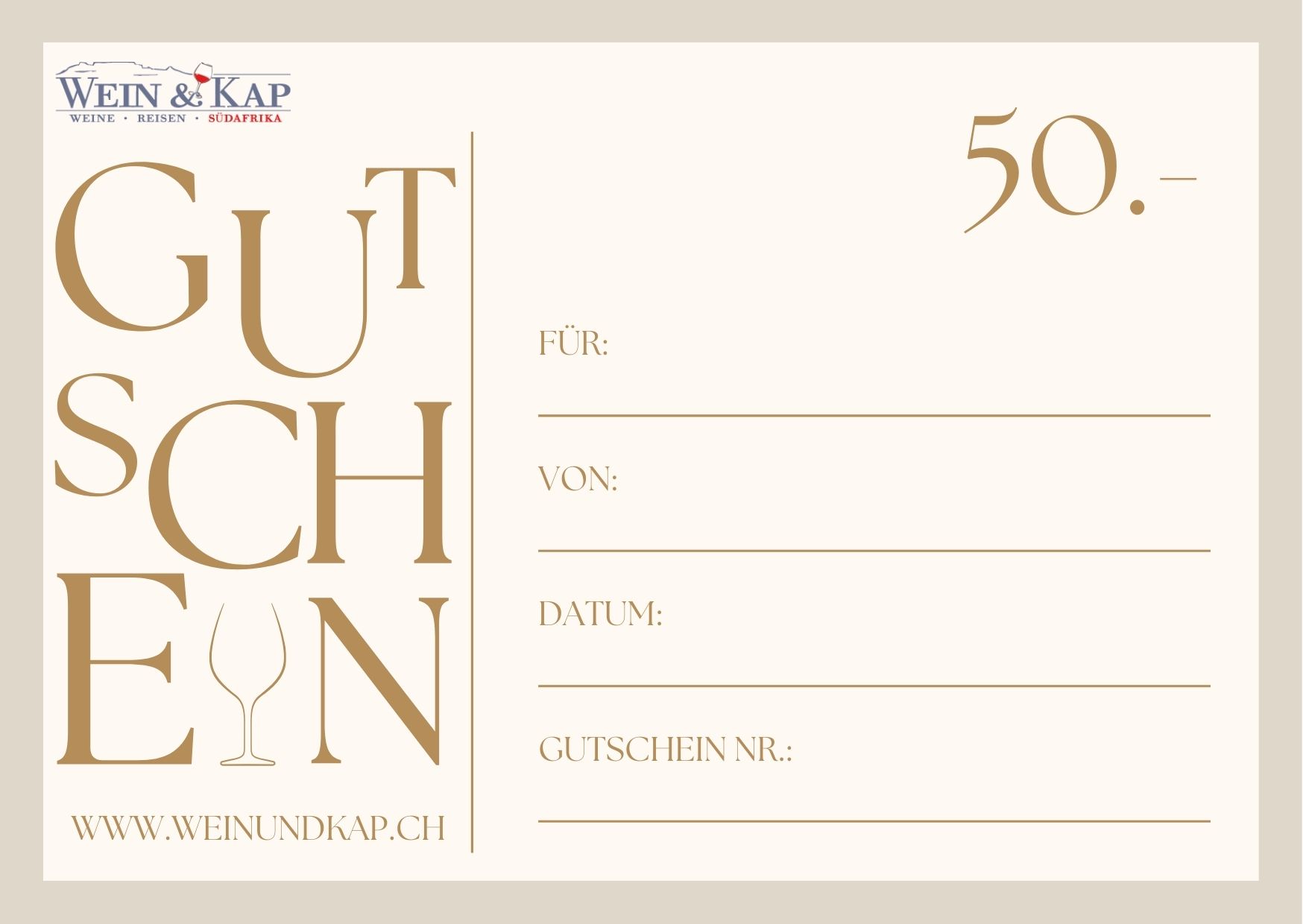 Den Geschenkgutschein in Höhe von CHF 50.00 kann der Beschenkte beim Bestellvorgang in unserem Warenkorb einlösen. Der Gutschein wird per PDF zum Selbstausdrucken nach Abschluss und Bezahlung (TWINT) der Bestellung per E-Mail zugestellt.